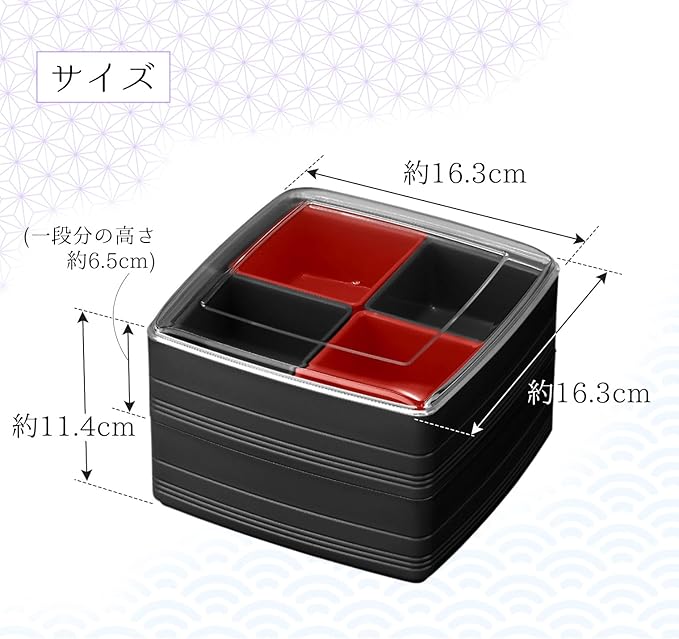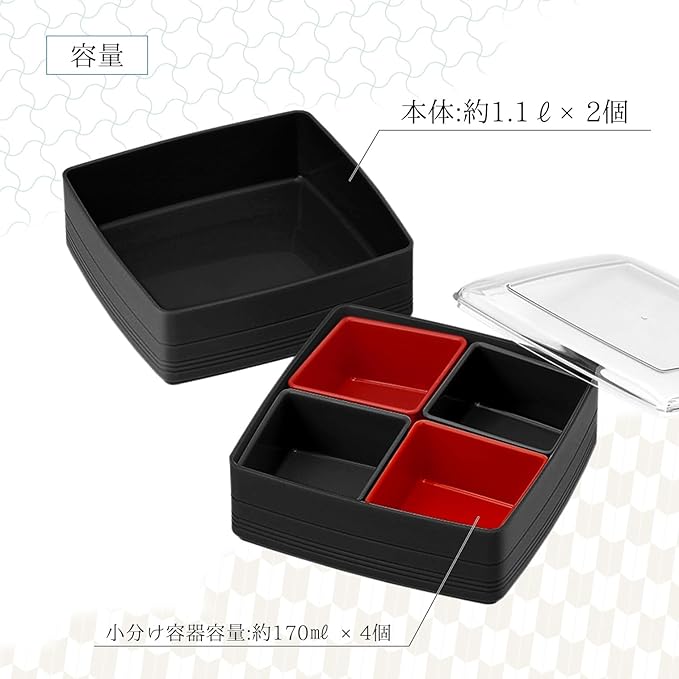 イノマタ化学(Inomata-K) 重箱 彩り小町 二段重 ブラック 日本製 おせち 弁当 行楽 和風 ピクニック パーティ 保存容器 シンプル おしゃれ 1078