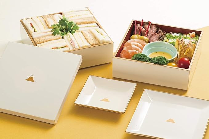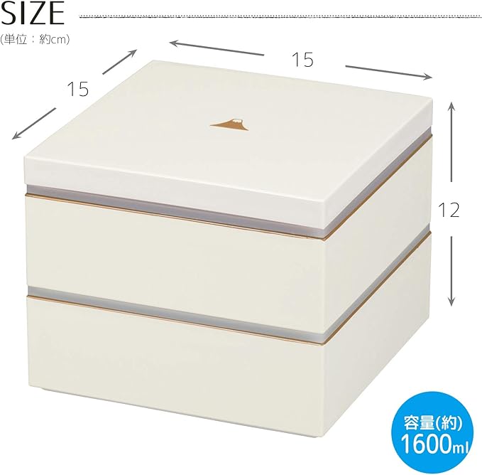 宮本産業 重箱 ホワイト 1600ml 二段重 富士山 シール蓋付