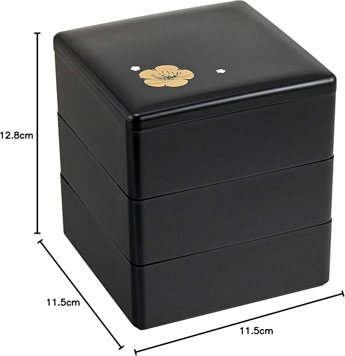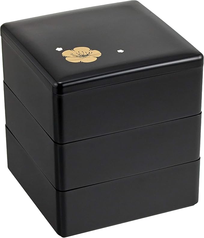 若泉漆器 3段重箱 4寸重 黒 梅花(内黒) H-155-75-A
