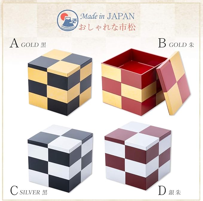 重箱 三段重 市松模様 朱金 五寸 外寸15 15 15cm 容量784ml 3 日本製 (飾り熨斗 1つき)