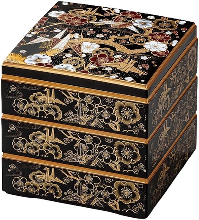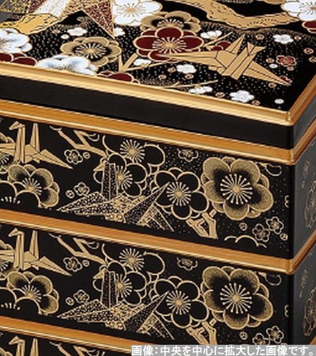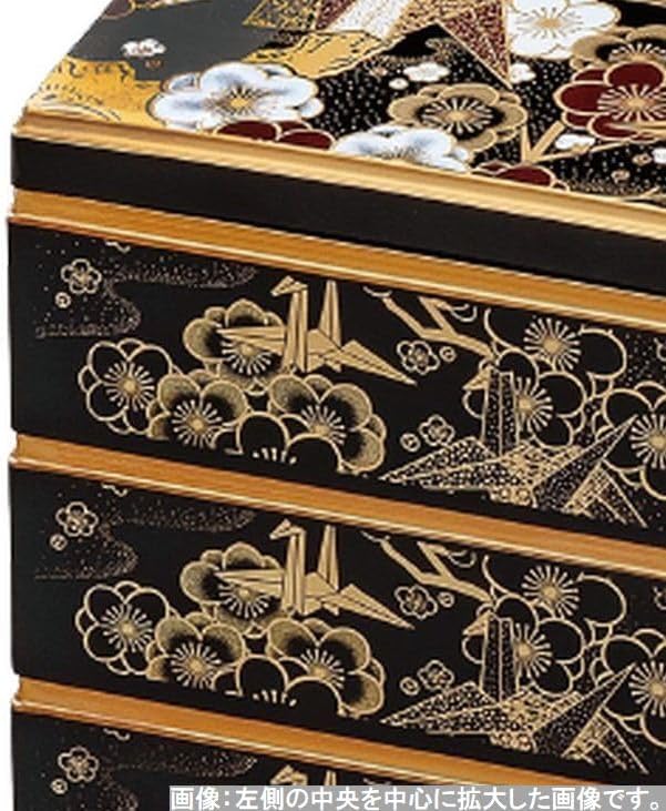 J-kitchens 重箱 3段 7.0寸 彩校倉 お重箱 黒 折鶴 20.8cm x 20.8cm x 19.5cm 日本製