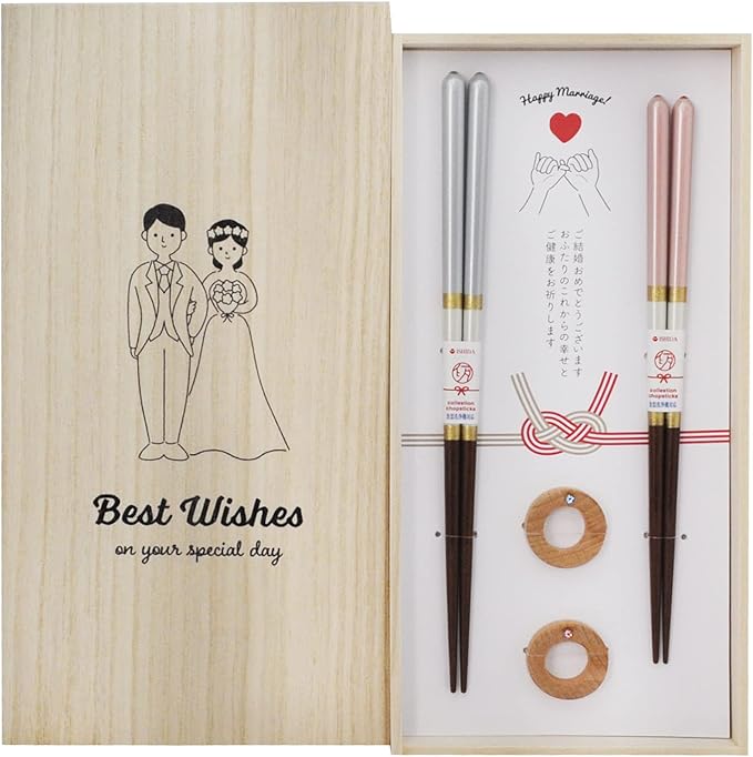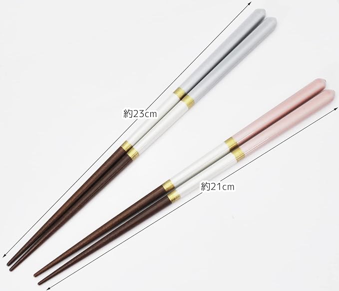 イシダ 食器洗浄機対応箸 桐箱 箸置付 シャンパンペア 23cm/21cm 水色/ピンク 【63168】