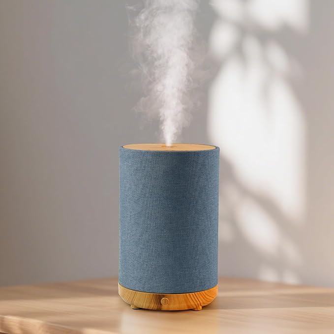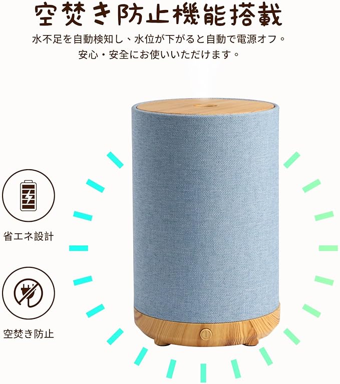 【限定商品】加湿器 アロマディフューザー 新モデル 超音波式 小型 卓上型 除菌 省エネ 静音 空焚き防止 LEDライト お手入れ簡単 和風 花粉対策 雰囲気作り 寝室・オフィス・リビング用 乾燥対策 ギフトにも最適 (布調デザイン・ブルー)