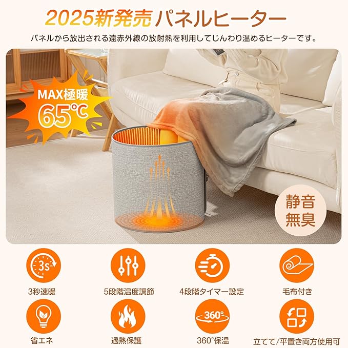 パネルヒーター 足元ヒーター 【2025年新型モデル 立てて/平置き2WAY使用可】 円筒形全方位発熱 デスクヒーター 立てて/平置き2WAY使用可 5段階温度調節 4段階タイマー 毛布付き 過熱保護 節電省エネ 足冷え対応 折り畳み式 オフィス 暖房器具 プレゼント