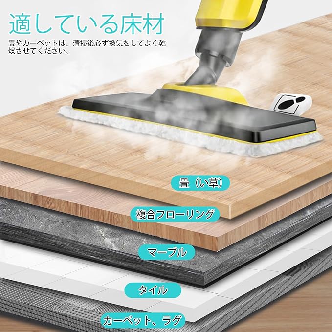 適用場合:硬い床面(タイル、PVCなど)、床の掃除、タイル張りの壁、届きにくい場所