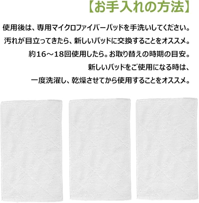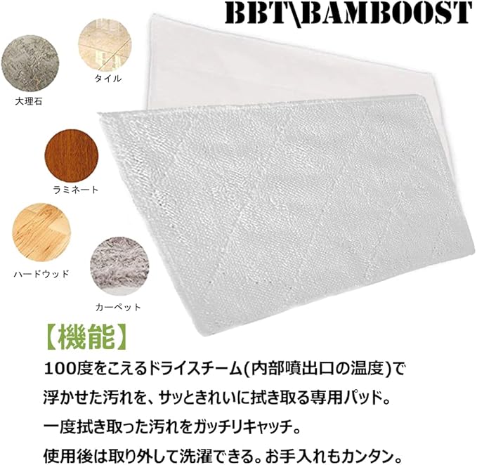 【きれいに拭き取る】100度をこえるドライスチーム(内部噴出口の温度)で浮かせた汚れを、サッときれいに拭き取る専用パッドです。