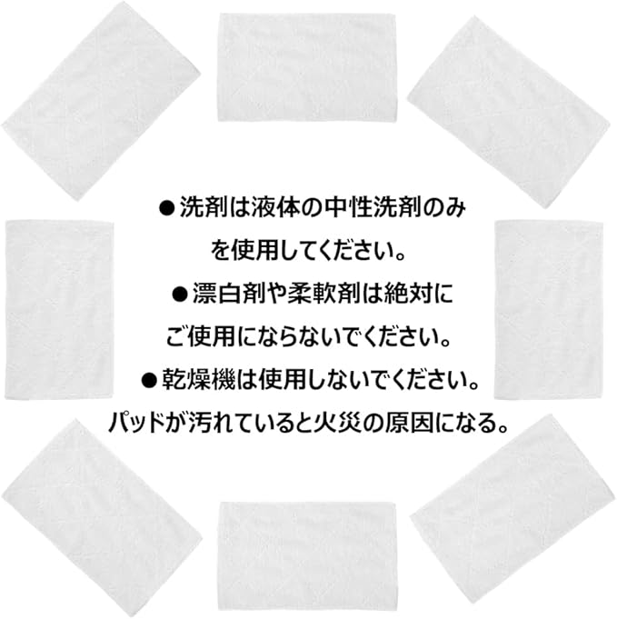 【パッドのお手入れ方法】パッドは中性洗剤を使って、ぬるま湯で手洗いするか、洗濯機の弱回転で洗ってください。 洗ったパッドは自然乾燥させてください。 漂白剤や柔軟剤は絶対にご使用にならないでください。