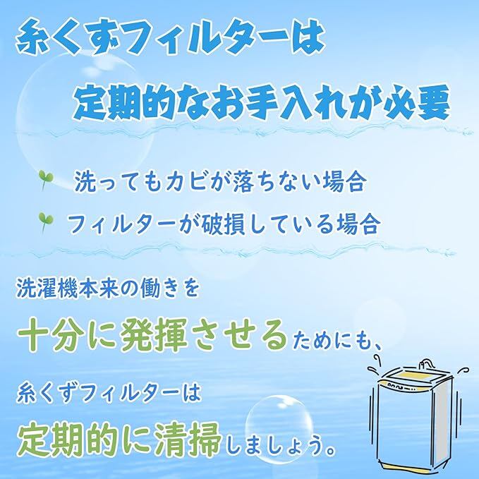 【高性能 高品質フィルター】糸くずフィルターのネットは100%ポリエステル作られ、綿質材料作られたネットより、毎日毎日洗濯してもカビが生えにくいです。耐久性のあるマイクロファイバー素材で作られており、長期間の使用にも耐えられます。高い性能を持って、洗濯中に発生した糸くずやゴミを効果的に捕集られます。洗濯機の糸くずフィルターは洗濯槽の汚れをキャッチしてくれる重要なパーツです。洗濯機の性能を保ち、衣類の清潔を守るために定期的に取り替えが必要あります。