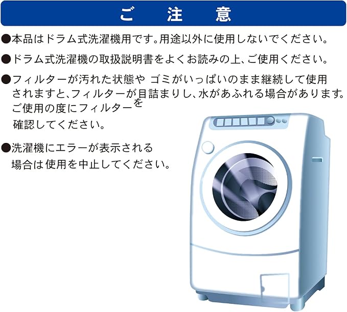 【使用上のご注意】毛ごみフィルターに付いているゴミをきれいに落としてから、本品をセットして下さい。本品が異物フィルターからはみ出る場合は、ハサミ等でカットしてからご使用下さい。糸くずやゴミがいっぱいになりましたら、お取替え下さい。