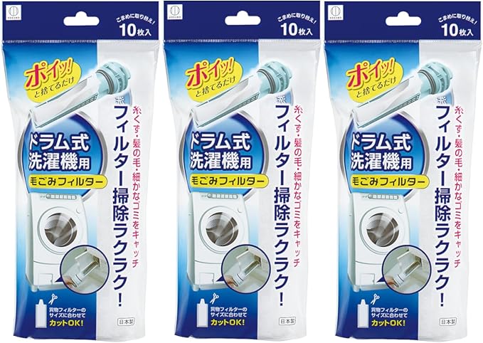 小久保工業所 ドラム式洗濯機用 毛ごみフィルター ( 10枚入 3個セット ) 日本製 / 汎用 ( 糸くずフィルター / ゴミ取りフィルター ) ドラム式用 ゴミ取り / 交換 簡単