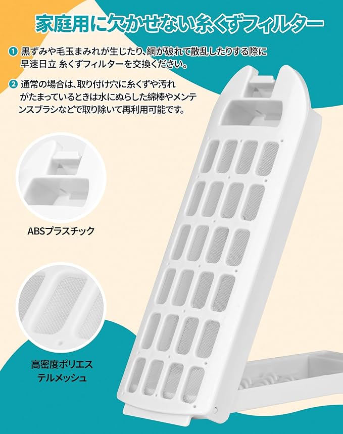 【優れた濾過性能】aqua洗濯機交換用糸くず フィルター自宅でペットを飼っている方に福音!ペットの服を洗濯させたり、飼い主さんの服に付いているペットの毛をキャッチさせたり、お手入れをより簡略化させた乾燥機フィルターです。洗濯中に発生する糸くずやゴミを効果的に捕集します。簡単に交換できるので、手軽に清潔な状態を保てます。純正品ではありません。