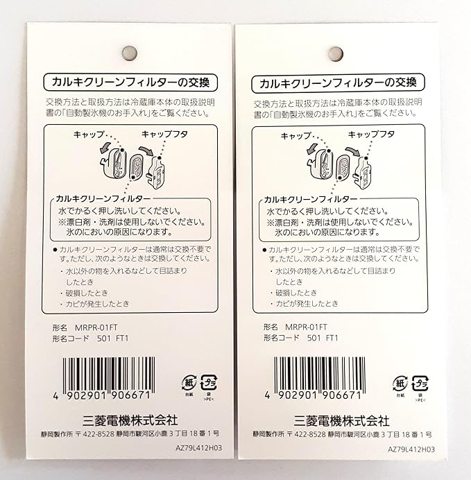 三菱 「純正」冷蔵庫用カルキクリーンフィルター MRPR-01FT 2個セット