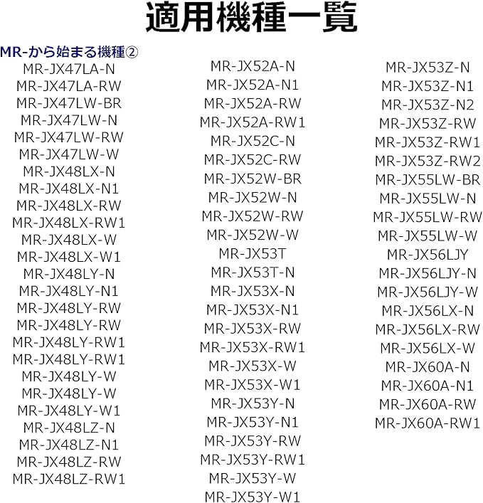 MR-JX47LW-W、MR-JX48LX-N、MR-JX48LX-N1、MR-JX48LX-RW、MR-JX48LX-RW1、MR-JX48LX-W、MR-JX48LX-W1、MR-JX48LY-N、MR-JX48LY-N1、MR-JX48LY-RW、MR-JX48LY-RW1、MR-JX48LY-W、MR-JX48LY-W1、MR-JX48LZ-N、MR-JX48LZ-N1、MR-JX48LZ-RW、MR-JX48LZ-RW1、MR-JX52A-N、MR-JX52A-N1、MR-JX52A-RW、MR-JX52A-RW1、MR-JX52W-BR、MR-JX52W-N、MR-JX52W-RW、MR-JX52W-W