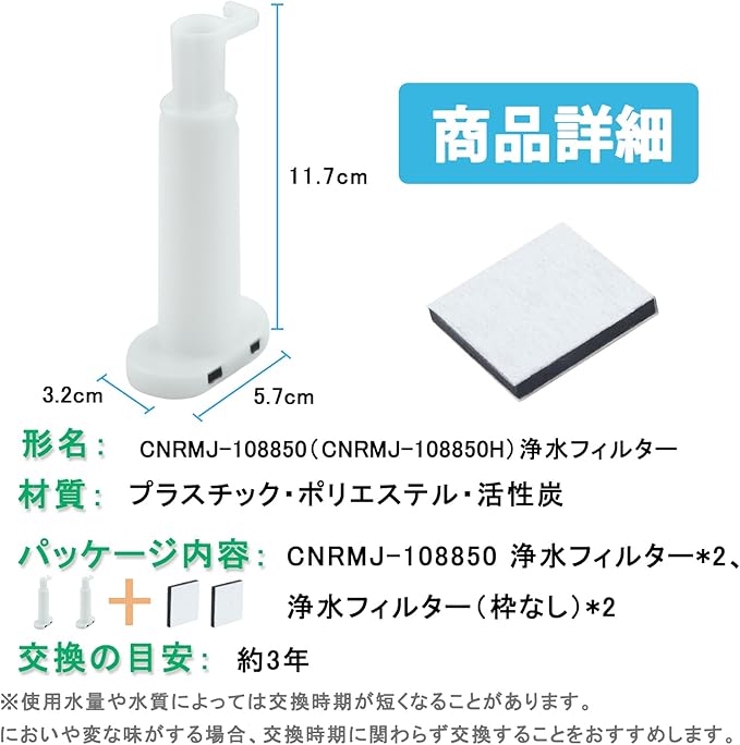 【交換目安】約3年。使用水量や水質によっては交換時期が短くなることがあります。においや破損がする場合、交換時期に関わらず交換することをおすすめします。