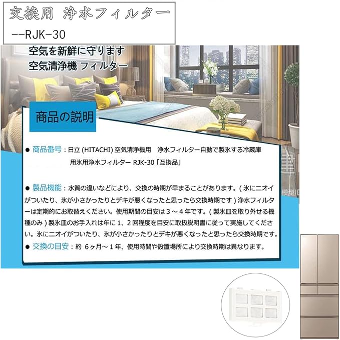 Tooney RJK-30 浄水フィルター 4個入【日本国内検査済】日立自動製氷機能付 冷蔵庫 交換用フィルター 互換品 (4個入)