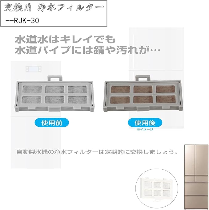【交換の時期が早場合】水質の違いなどにより、交換の時期が早まることがあります。(氷にニオイがついたり、氷が小さかったりとデキが悪くなったと思ったら交換時期です)。