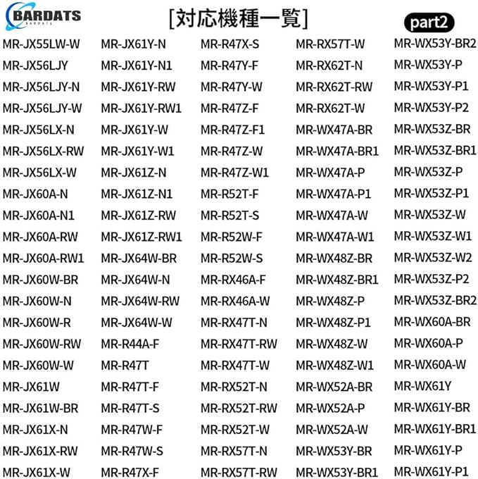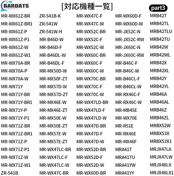 【対応機種】 MRPR-01FT MR-JX52W M20VJ5526 MR-JX53Z MR-JX61Y M20KW0526 M20KWO526 MR-JX60W MR-MB45E MR-WX47C MR-WX71Z MR-B46D MR-RX47T MR-RX52T MR-WX60A MR-MX50F MR-MX57D MR-B46A MR-R47W MR-WX47D M20CM5526 MR-A37JT MR-A37M MR-A37NF MR-A41J MR-A41JS MR-A41M MR-A41N MR-A41NF MR-A41NFS MR-A41R MR-A41SB MR-A41T MR-A41YW MR-A41YY MR-B42T などに対応できる三菱冷蔵庫 製氷機フィルターです。(ほとんどの三菱冷蔵庫製氷機に対応できすが、具体的な機種は写真と商品の説明を参考至てください。