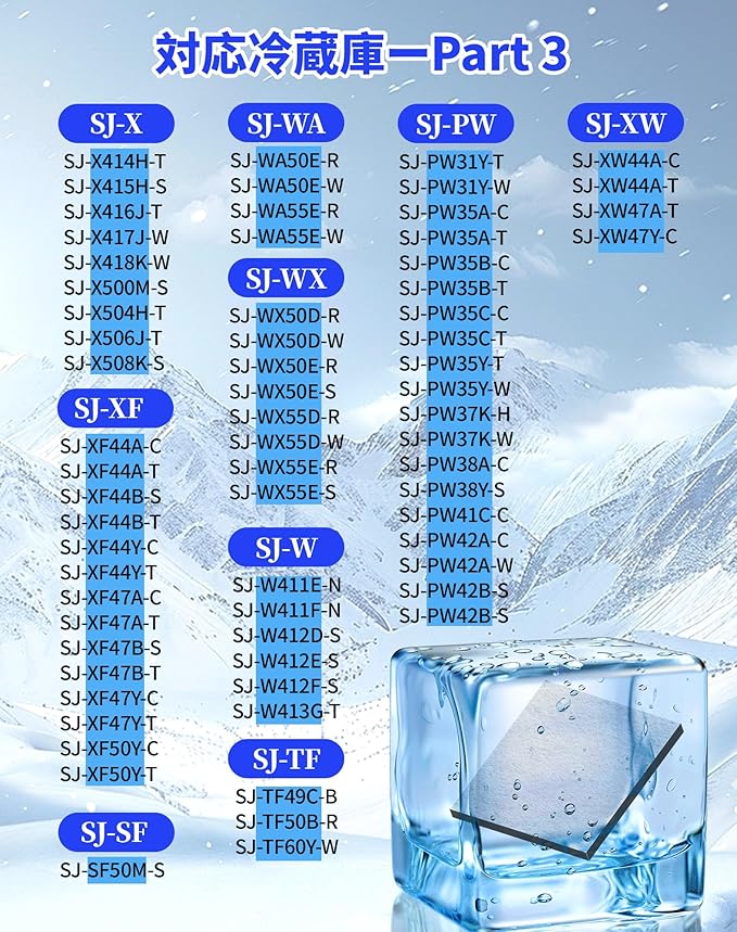 【対応機種1】シャープ 冷蔵庫用製氷機 フィルター は、以下のモデルに適用: SJ-GW35C SJ-GW35F SJ-GW35H SJ-GW35J SJ-GW36D SJ-GW36E SJ-GX50D SJ-GX50E SJ-GX55D SJ-GX55E SJ-KB50M SJ-MF43K SJ-MF43M SJ-MF46H SJ-MF46J SJ-MF46K SJ-MF46M SJ-MF50J SJ-MF50K SJ-MF51M SJ-MF55M SJ-MW46H SJ-MW46J SJ-MW46K SJ-MW46M SJ-P37E3 SJ-P410M SJ-P411D SJ-P461D SJ-PF46C SJ-PF47A SJ-PF47B SJ-PF47Y SJ-PW31Y SJ-PW35A SJ-PW35B SJ-PW35C SJ-PW35Y SJ-PW37K SJ-PW38A SJ-PW38Y SJ-PW41C SJ-PW42A SJ-PW42B ※こちらの対応機種は部分です。詳細は商品の説明をご覧ください。