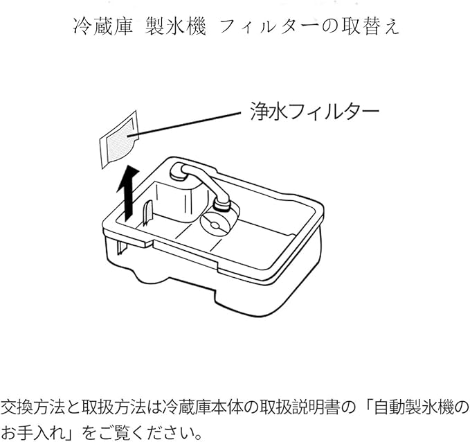【定期的にお取替え】(氷にニオイがついたり、氷が小さかったりとデキが悪くなったと思ったら交換時期です)・水質の違いなどにより、交換の時期が早まることがあります。次のようなときは交換してください。 ・水以外の物を入れるなどして目詰まりしたとき ・破損したとき ・カビが発生したとき・使用期間の目安 (1日2L水道水の使用で約1~2年)。交換方法と取扱方法は冷蔵庫本体の取扱説明書の「自動製氷機のお手入れ」をご覧ください。