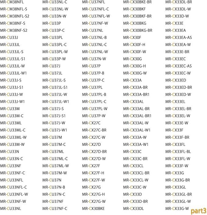 【対応機種】※こちらの対応機種は部分です。詳細は商品の説明をご覧ください。 MR-C33F、MR-C33F-W、MR-C33G、MR-C33G-W、MR-C34A、MR-C34A-P、MR-C34A-W、MR-C34C、MR-C34C-P、MR-C34C-W、MR-C34D、MR-C34D-P、MR-C34D-W、MR-C34E、MR-C34ES、MR-C34ESA、MR-C34ESA-S、MR-C34ESA-S1、MR-C34ES-R、MR-C34ES-R1、MR-C34ET、MR-C34ET-AS、MR-C34ET-R、MR-C34EW、MR-C34EW-AS、MR-C34EW-R、MR-C34EX、MR-C34EX-AS、MR-C34EX-R、MR-C34EY、MR-C34EY-AS、MR-C34EY-R、MR-C34EZ、MR-C34EZ-AS、MR-C34EZ-R、MR-C34R、MR-C34R-B、MR-C34RL、MR-C34RL-B、MR-C34RL-S、MR-C34RL-W、MR-C34R-S、MR-C34R-W、MR-C34S、MR-C34S-B、MR-C34S