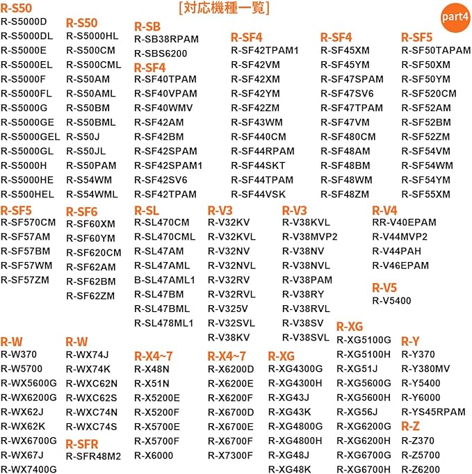 【対応機種】 R-382SP R-382SPL R-41EPAM R-447 R-448 R-A44Y R-A5700 R-A6200 R-B5200 R-B5700 R-B6200 R-B6700 R-BS26VLV R-BS421V R-C4800 R-C5200 R-C5700 R-C6200 R-C6700 R-CD40NPAM R-CD40NPAML R-CD46NPAM R-CD46NPAML R-CD46RPAM R-CF42TPAM R-CF42VPAM R-CF44RPAM R-CF48XM R-CK40EPAM R-CK40EPAML R-CK40MPAM R-CK40RPAM R-CK40RPAML R-CK46EPAM R-CK46EPAML R-CK46MPAM R-CK46MPAML R-CK46RPAM R-CK46RPAML R-CS34MPAM R-CS34SPAM R-CS34SPAML R-CS37WMV R-CS37YMV R-CS38MVP2 R-CS38MVP2L R-CS41EPAM R-CS41EPAML R-CS41XM
