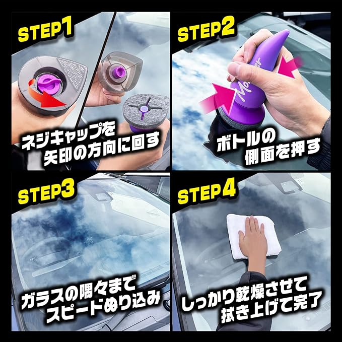 雨の日の視界を良好にする窓ガラス専用塗り込みタイプの撥水コーティング剤です。