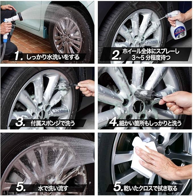 ノーコンパウンドでやさしい泡が、ホイールの汚れを洗い流す。