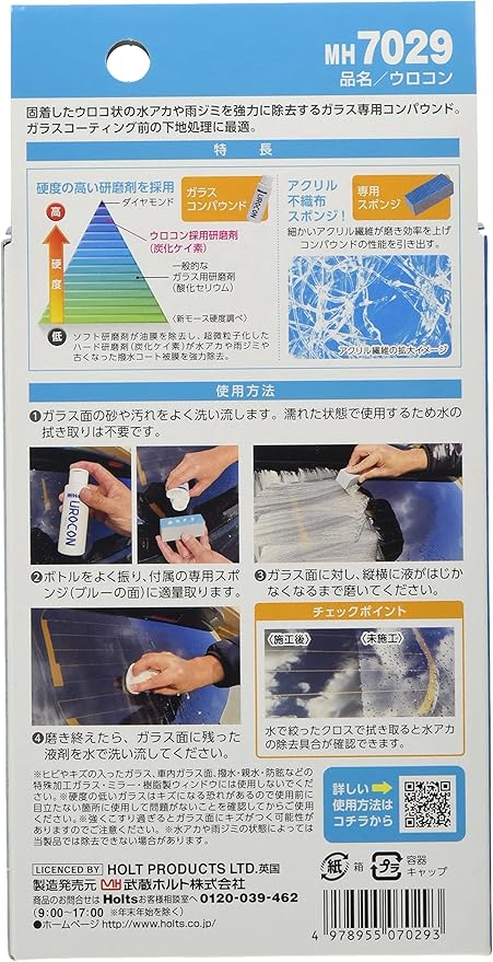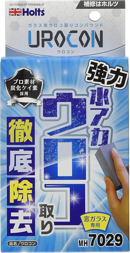 ホルツ 洗車用品 ガラス専用ウロコ&被膜除去剤 ウロコン 80g Holts MH7029 プロ仕様 高硬度炭素ケイ素採用 専用スポンジ付 フロントガラス約8枚施工可