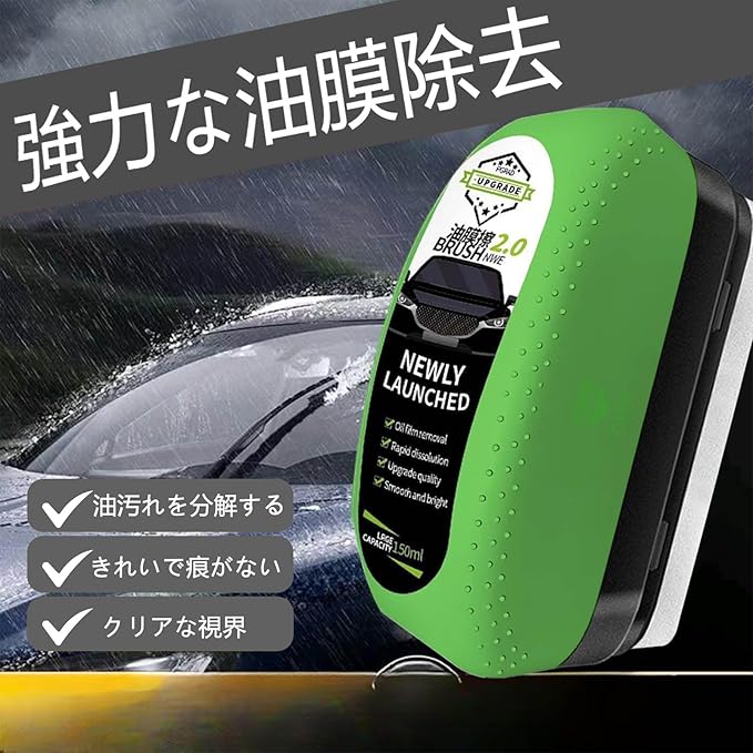 疎水効果:当社の油膜取りクリーナー、雨の中でも水をはじく疎水効果があり、最適な視界を確保します