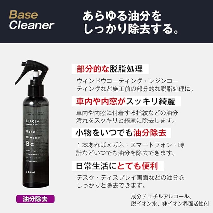 ラクシア 車用 ベースクリーナー 油分除去剤 車内 内窓 ガラス メガネ スマホ ディスプレイ 画面 200ml