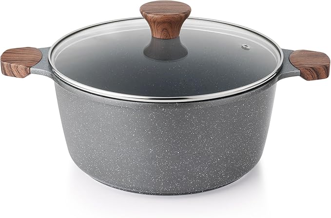 SENSARTE 両手鍋24cm 深型鍋 大きい 卓上鍋 ih対応 焦げつかない マーブルコート PFAS & PTFEフリー お手入れ簡単 カレー鍋 揚げ鍋 すき焼き 鍋料理 グレー