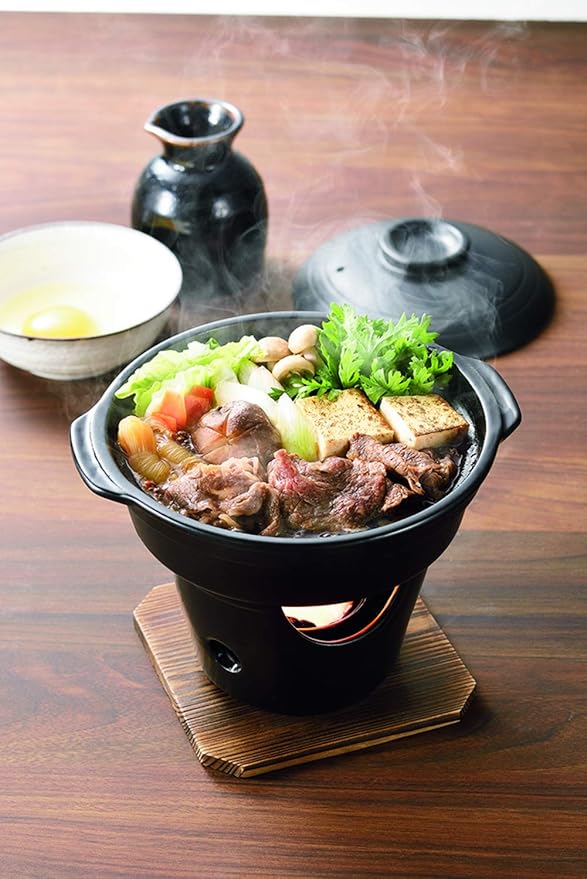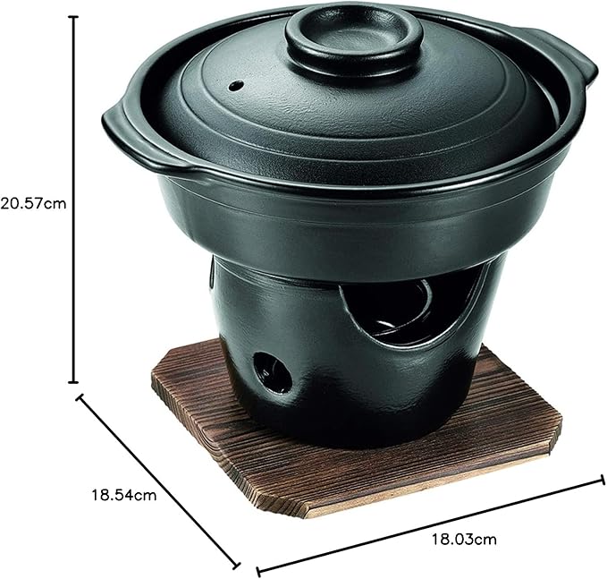 〇陶器ならではの味わい、温かみのある風合いで料理の美味しさが引き立ちます。 製品サイズ(約) : 幅205 奥行185 高さ180mm 製品重量(約) : 1288g 本体・コンロ・燃料受け : 陶器 木台 : 天然木 生産国 : 中国