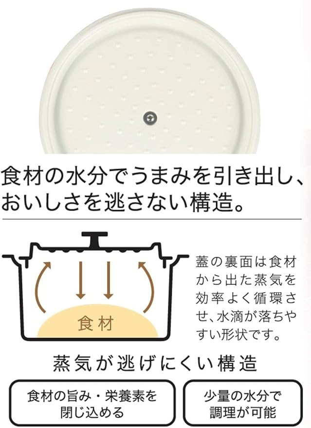 素材・材質:本体/アルミニウム合金、はり底/ステンレス鋼(クロム16%)(底の厚さ4.5mm)、蓋/アルミニウム合金、つまみ/ステンレス鋼