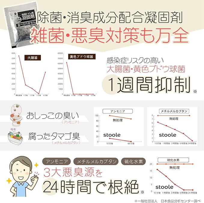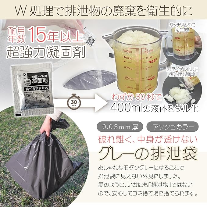 ✅【第三者機関にて抗菌性・消臭性検査済み】凝固剤は日本国内の検査機機関にて抗菌性・消臭性の検査を実施しています。また長く保管いただける様、15年長期保存の可能なアルミパッケージを採用した防災・非常用トイレです。