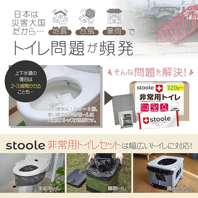 ✅【家族が安心して過ごせる備え】スツーレ(stoole) から新しい 非常用トイレ/防災・携帯トイレ セットが登場!取り付けも簡単で、処理にも困らないため非常時でも安心防災グッズです。