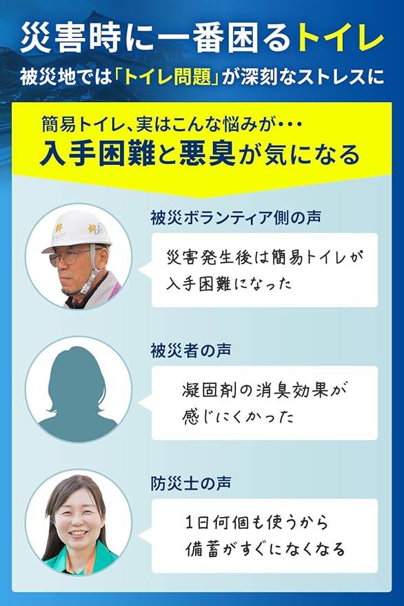 【被災者が作った防災トイレ】17歳で阪神・淡路大震災を経験した被災者が、防災士・現役ボランティア代表と共同監修。被災直後に崩れた「安心・便利さ」の記憶と、多くの被災者の声をもとに開発しました。