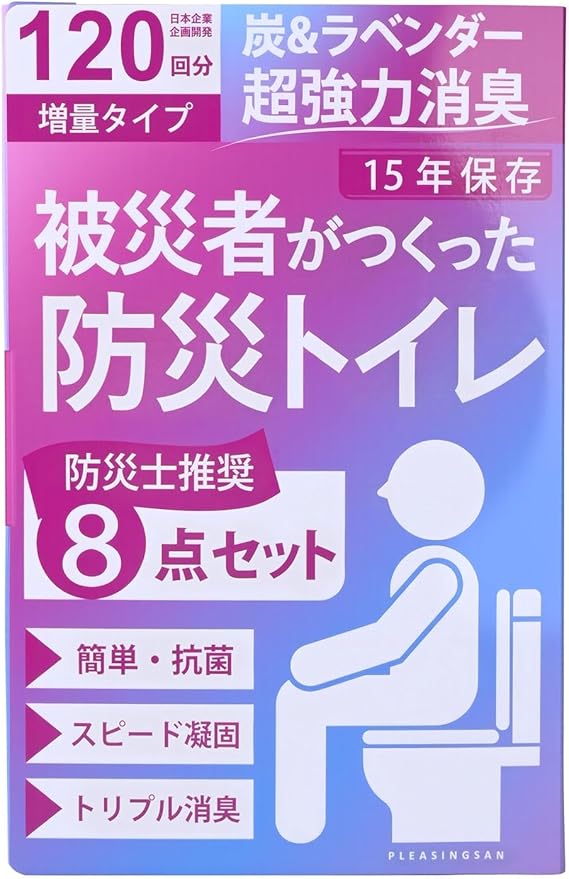 【被災者が作った防災トイレ】 PLEASINGSAN 簡易トイレ 車 災害 非常用 防災 凝固剤 トイレ セット グッズ ボウサイ トイレ 臭わない 袋付き 15年保存 【120回増量タイプ】 プリージングサン
