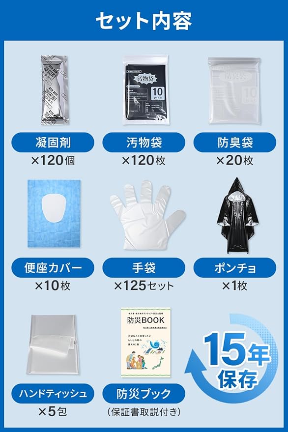 【15年保存・3大強力消臭成分】活性炭・シリカ・ラベンダーを配合し、消臭・抗菌・防臭効果を徹底。現場と被災者の声をもとに開発したオリジナル凝固剤です。