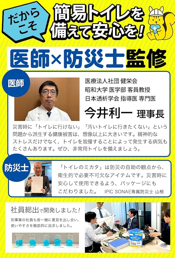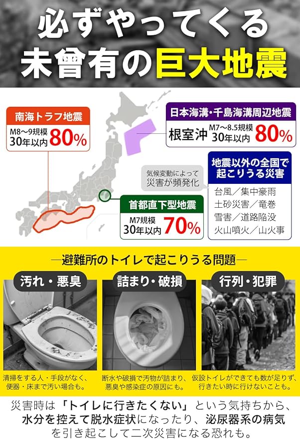 医師・防災士監修! 消臭・抗菌・簡単すぐに使える・水がなくてもトイレができる 素早く固まって臭いもれ無し 処理袋つきで使用後も清潔 「災害」「断水」「介護・嘔吐」「停電」「渋滞」「アウトドア」