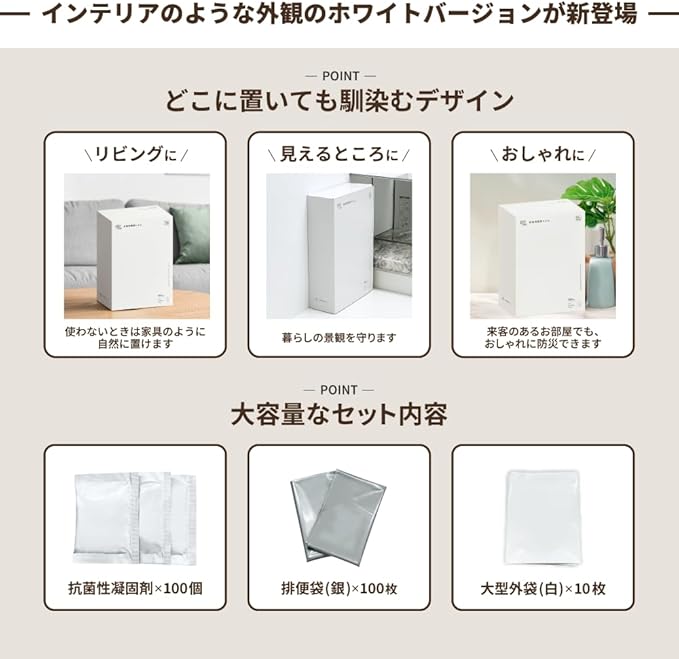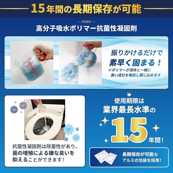 ✅【防災士監修】急に災害が発生しても安心してご利用いただけるように、排便袋・処理袋・凝固剤は防災士監修の基で設計・製造しております。特に特注のポリエチレン素材により、使用音を軽減することができることもこだわりの一つです。使用時の大切なご家族を守るための万全な備えをサポート致します。