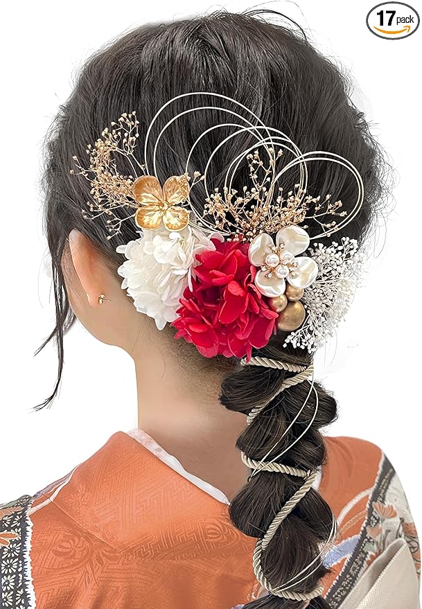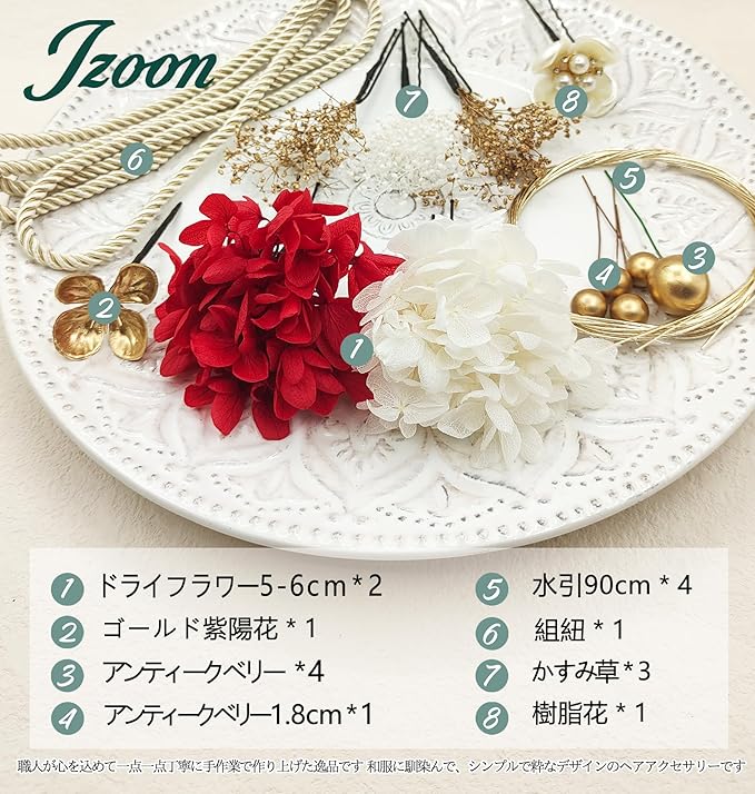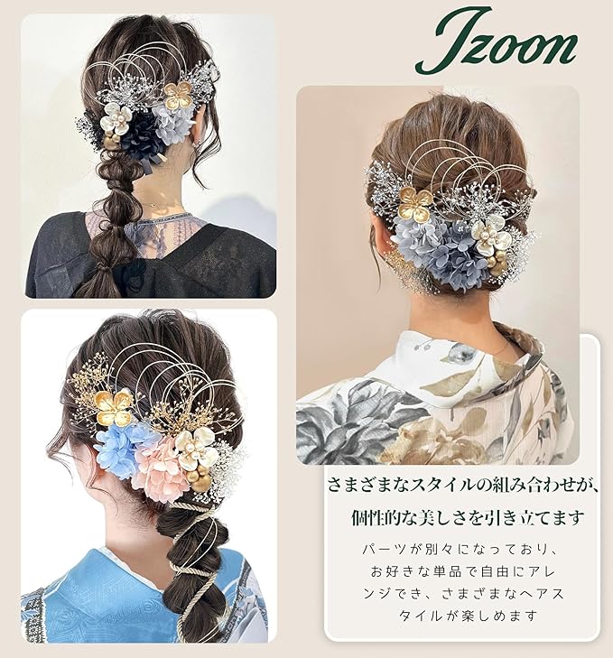 [JZOON] 髪飾り 人気 髪飾り セット ヘアアクセサリー ヘアーアレンジ 花 ドライフラワー 水引 振袖 和服 和装 着物 袴 浴衣 成人式 結婚式 卒業式 七五三 お祭り ポニーテール