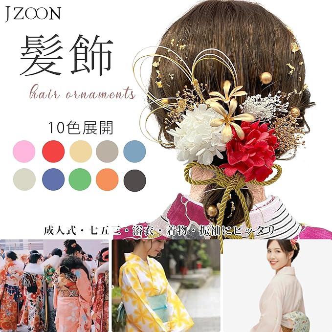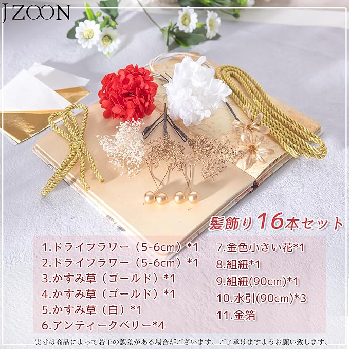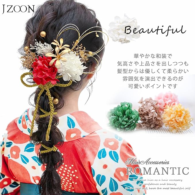[JZOON] 成人式 髪飾り【9色展開】 七五三 造花 ドライフラワー 水引き 小花モチーフ 和装 金箔 ゴールド ヘッドドレス ヘアアクセサリー 入学式 振袖 卒業式 着物 袴 浴衣 ブライダル ウエディング 発表会 LQ1050