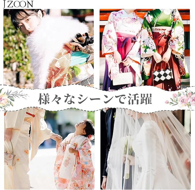 【ご利用シーン】成人式、入学式、成人式、お正月、お祭り、花火大会など様々な式典での和服のみならず、洋服にもお似合いです。髪型に合わせて、お花の角度を調整することができ、アレンジも自由です。