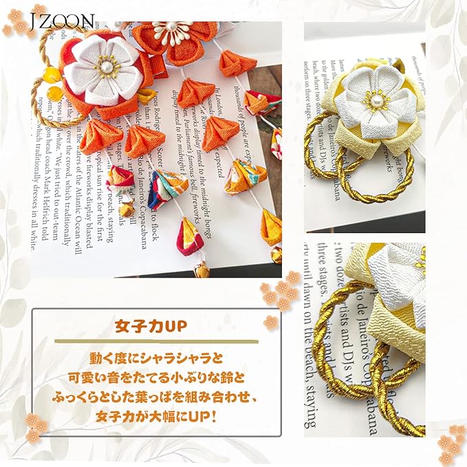JZOON 髪飾り つまみ細工 七五三 成人式 浴衣 袴 着物 振袖 和装 花 卒業式 結婚式 鈴付き 手作り