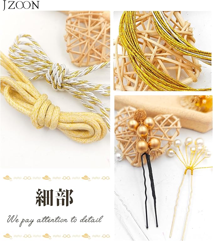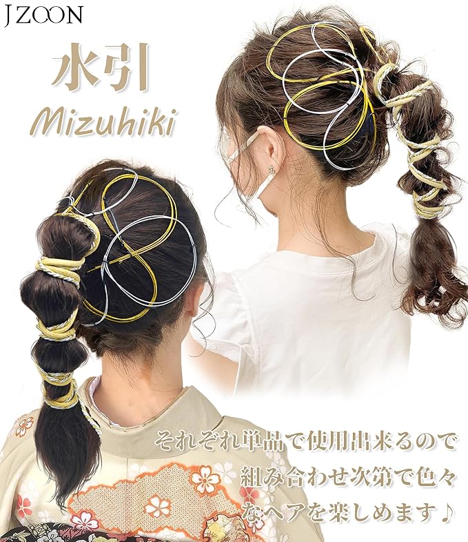 [JZOON] 髪飾り 成人式 水引 金箔 銀箔 組紐 人気 ロープ ゴールド シルバー ヘアアクセサリー 前撮り 振袖 卒業式 結婚式 和装 袴 着物 浴衣に ブライダル 花嫁 ヘッドパーツ J0010