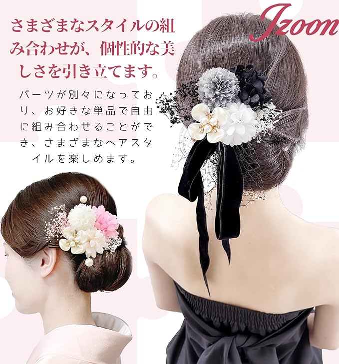 【選び抜かれた素材】すべての単品は天然素材で作られており、自然な雰囲気を加えてくれます。細部に至るまで精緻な作りと完全性が保証されています。パーツが別々になっており、お好きな単品で自由に組み合わせることができ、さまざまなヘアスタイルを楽しめます。