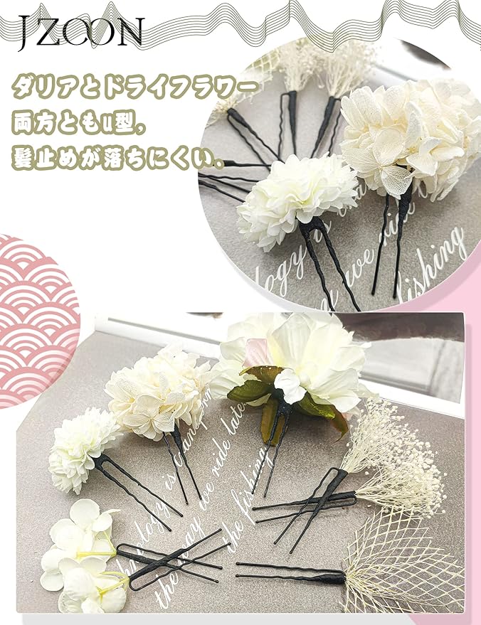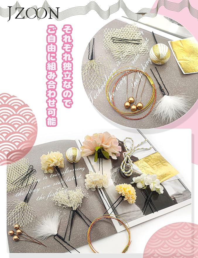 「使用範囲が広い」周囲の雰囲気までパッと明るくしてしまう、華やかなデザインです。お子様から大人の女性まで、年齢を問わず、また飽きることなくお使いいただけます。便利性を追求するため、ⅠピンとUピンを設計します。卒業式、成人式、結婚式、花火大会、夏祭り、などのイベントに適用します。