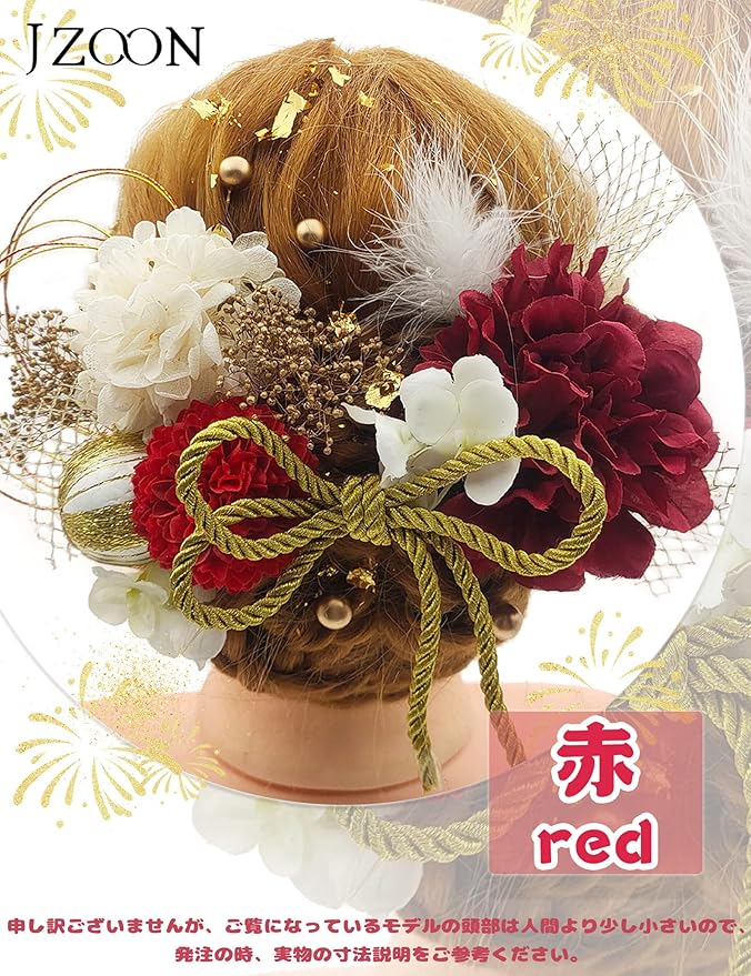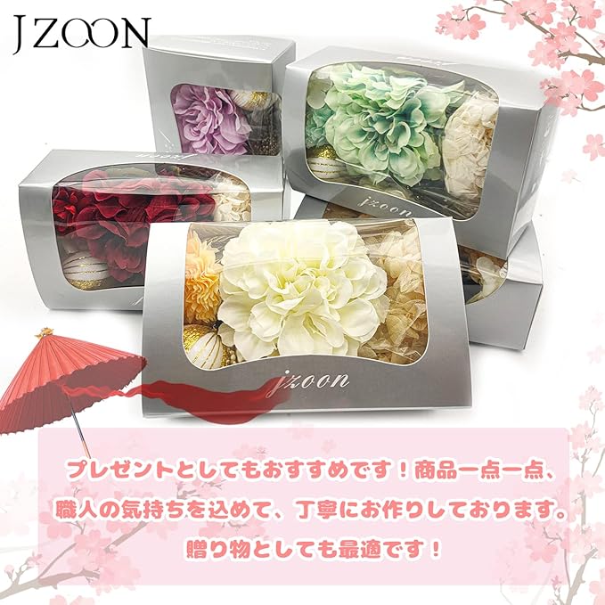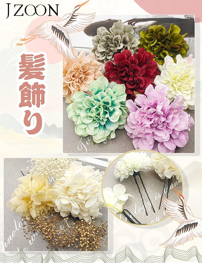 [JZOON] 8色展開 ドライフラワー 髪飾り ダリア 造花飾り 和玉 赤 ヘアアクセサリー 成人式 ゴールド 水引 ヘッドパーツ あじさい 振袖 着物 卒業式 七五三 浴衣 袴 結婚式 かすみ草 和装 造花 手作り 専用ケース付き