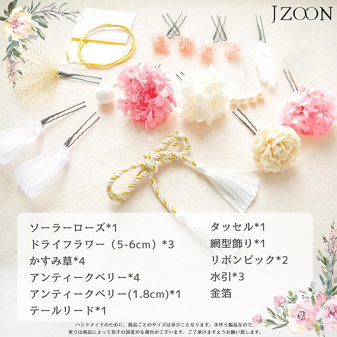 [JZOON] 9色展開 成人式 髪飾り 水引 振袖 着物 卒業式 七五三 浴衣 袴 結婚式 ドライフラワー 造花飾り 和玉 ヘアアクセサリー かすみ草 和装 造花 リボン 羽 手作り T5033