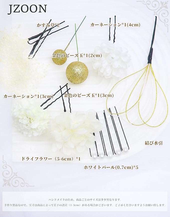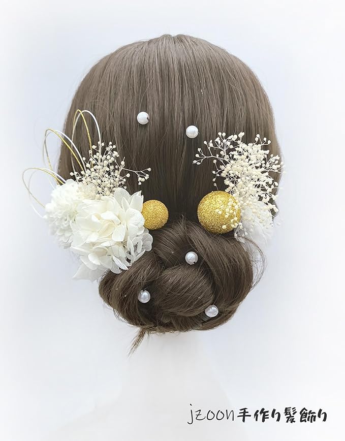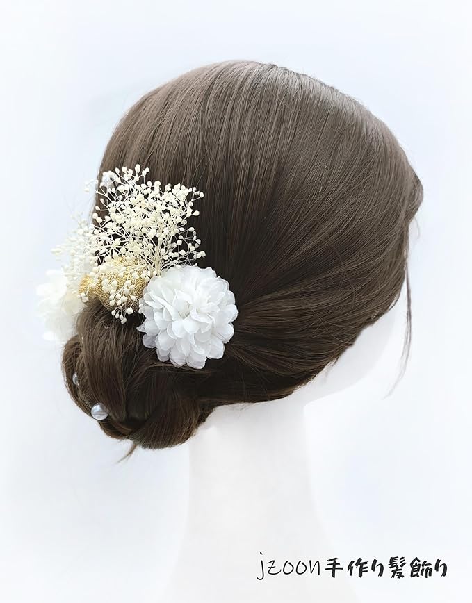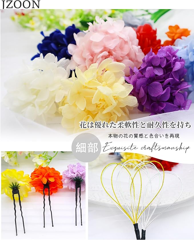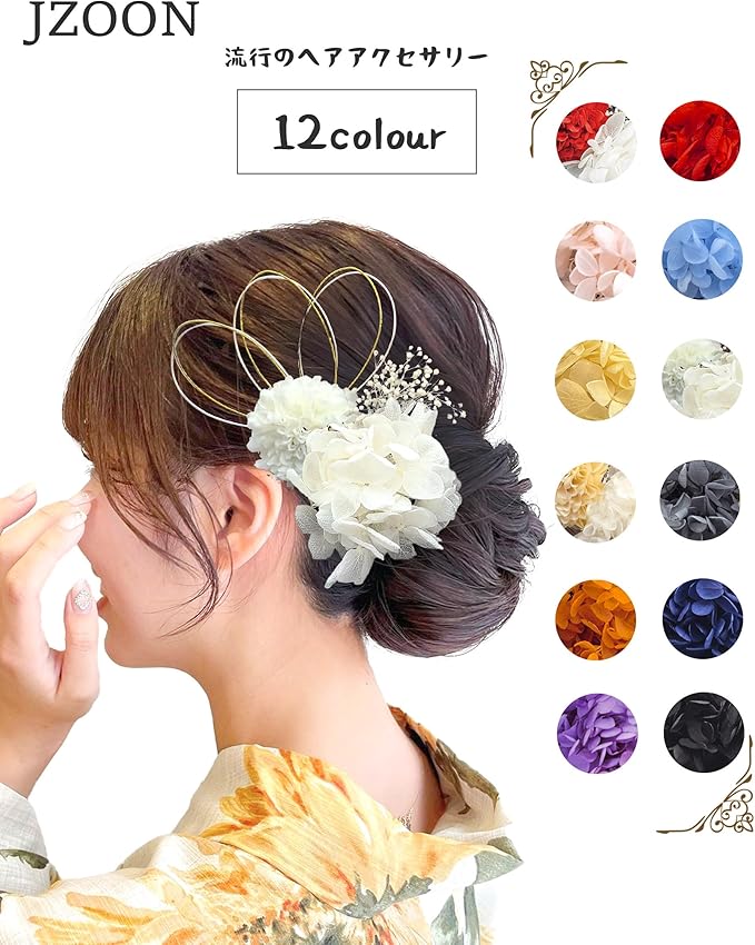 【JZOON】全12色 浴衣 髪飾り 成人式 袴 卒業式 和服 和装 着物 ドライフラワー ピンポンママ 紫陽花 かすみ草 金色の玉 水引 赤 白 青 オレンジ B7001